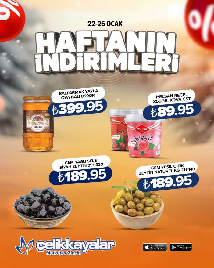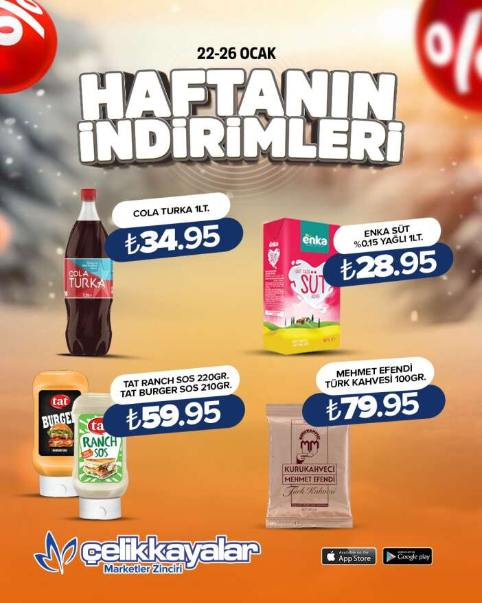 Çelikkayalar AVM, 22 - 26 Ocak tarihleri arasında geçerli olacak haftalık indirimli ürünler listesini duyurdu.