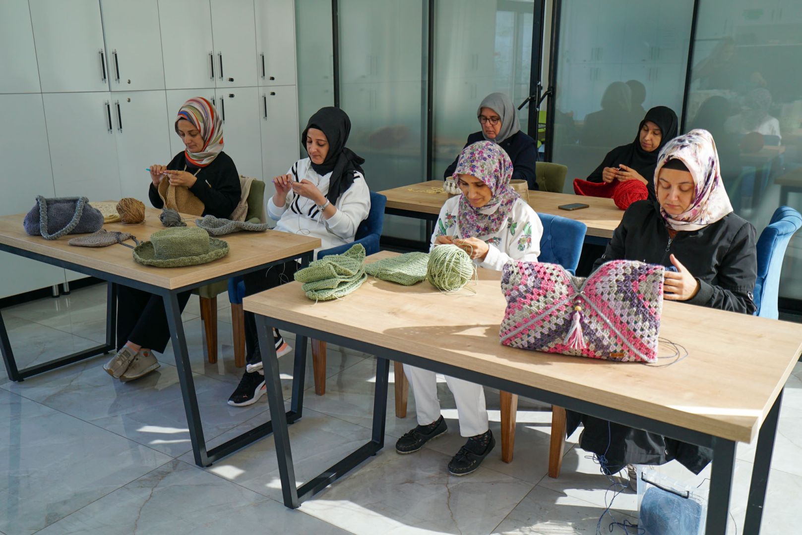Meram Belediyesinin girişimleri ve yoğun çabasıyla hayat bulan Down Sendromlu Bireyler Yaşam Destek Merkezi DOSD Meram, sadece özel çocukların değil, onların annelerinin de hayatına dokunuyor. Merkezde eğitim gören down sendromlu özel çocukların velileri, derslerin bitimini beklerken boş durmuyor; Meram Halk Eğitim Merkezi iş birliğiyle düzenlenen el sanatları kurslarına katılarak hem üretiyor hem de sosyalleşiyor. Meram Belediyesinin yürüttüğü proje kapsamında, 80 anne el işi eğitimi alıyor. Meram Halk Eğitim Merkezi’nin uzman eğitmenleri eşliğinde yürütülen kurslarda veliler, panç, rölyef, supla ve çanta örümü gibi el sanatlarını öğreniyor.