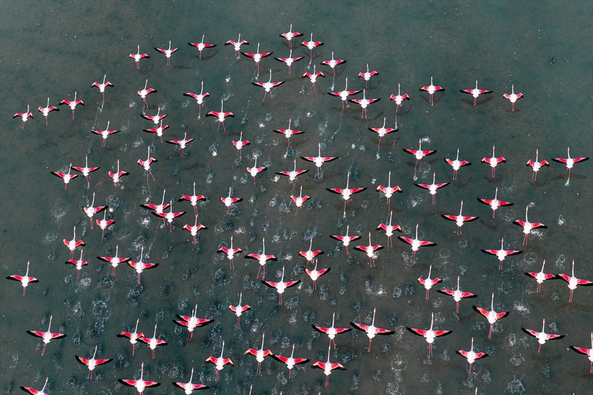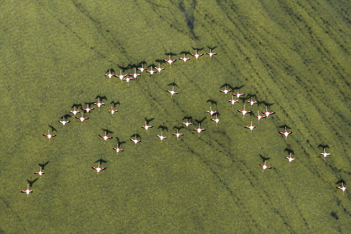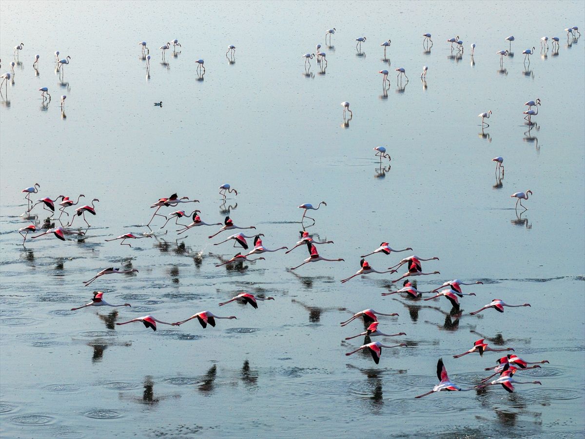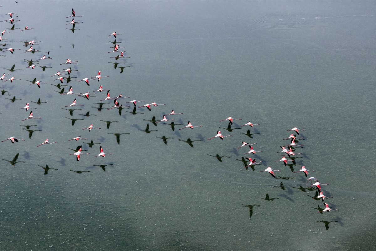 Konya’nın Kulu ilçesindeki Düden Gölü, mevsimsel yağışlarla birlikte yükselen su seviyesiyle, göç yolundaki flamingolara ev sahipliği yapıyor. Bölgedeki doğal yaşam, ilkbahar ve flamingolarla birlikte görsel şölen sunuyor.