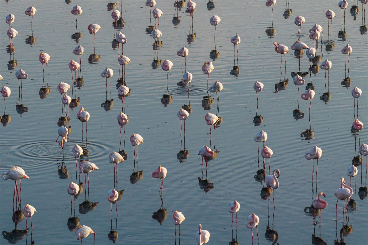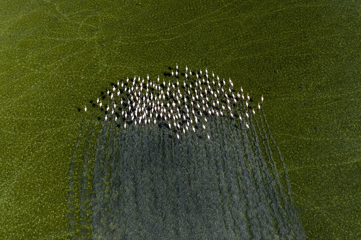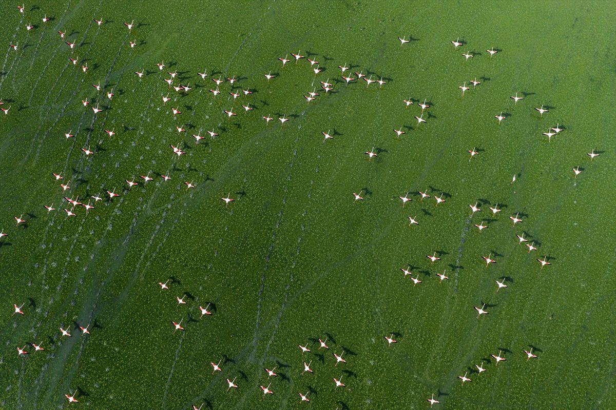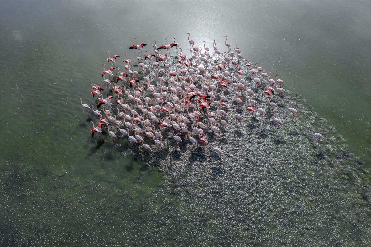 Konya’nın Kulu ilçesindeki Düden Gölü, mevsimsel yağışlarla birlikte yükselen su seviyesiyle, göç yolundaki flamingolara ev sahipliği yapıyor. Bölgedeki doğal yaşam, ilkbahar ve flamingolarla birlikte görsel şölen sunuyor.