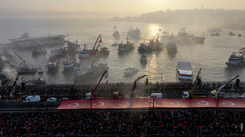 Aralarında kefiye takan ve Osmanlı kıyafeti giyenlerin de bulunduğu katılımcılar, köprü ve çevresine kurulan dev ekranlardan da eylemi takip etme imkanı buldu. Yürüyüşe 450 bin kişinin katıldığı anons edildi.