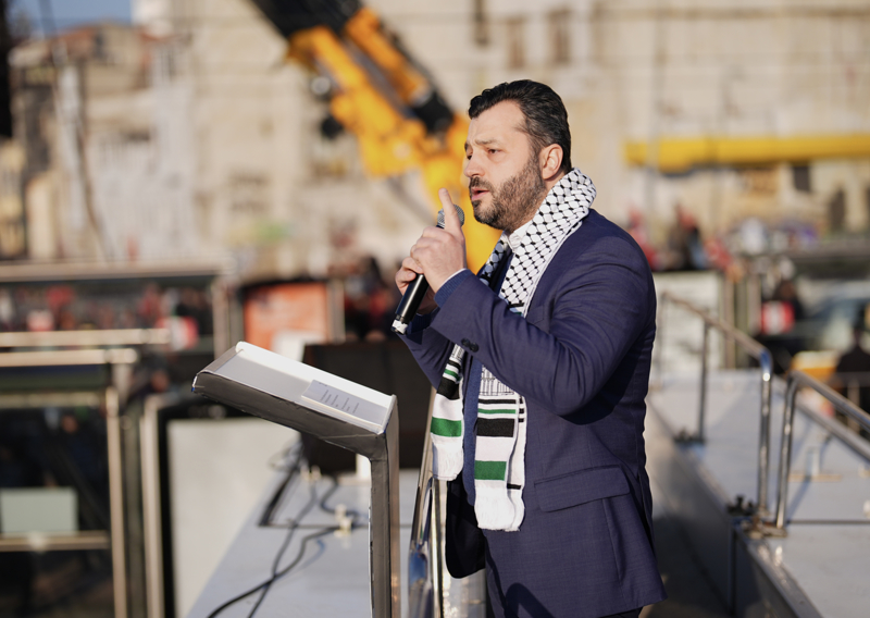 Filistin'de yaşanan acılara vurgu yapan Beşinci, "Aziz İstanbul'dan, İsra'nın son durağı, miracın başlangıcı, Müslümanların ilk kıblesi Mescidi Aksa'nın Rabbi'ne yemin olsun ki her yaştan ve her milletten Müslüman'ın Aksa'yı doldurup taşıracağı günler gelene kadar haklı mücadelemiz devam edecek. Dün Ayasofya'da, bugün Şam'da, bin yıldır alem-i İslam'da, şehitler otağı aziz vatanda bir güneş doğacak, zafer bizim olacak inşallah." diye konuştu.