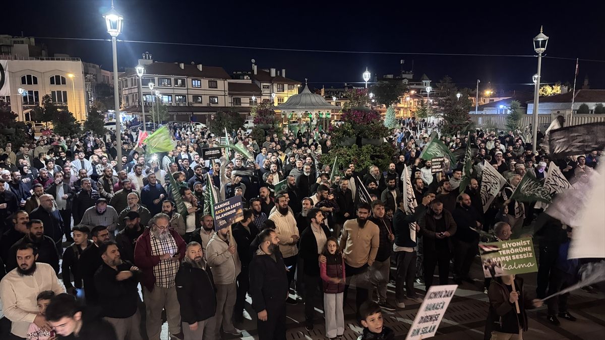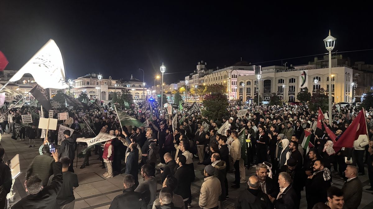 Konya Mevlana Meydanı'nda toplanan çok sayıda kişi, İsrail aleyhine slogan attı. Türk ve Filistin bayrakları ile çeşitli pankartlar taşıyan vatandaşlar, tekbir getirdi.