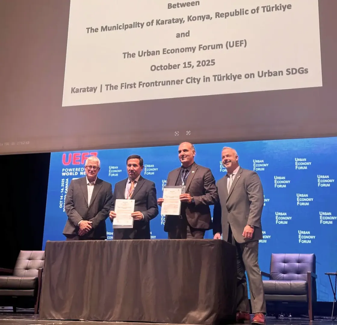 erişilebilirlik temelli projelerini aktararak ilçenin şehircilik vizyonunu uluslararası platformda paylaştı. Forum kapsamında Karatay, Türkiye’de Sürdürülebilir Kalkınma Hedefleri (SDG’ler) alanında “ilk öncü şehir” unvanını aldı. Bu önemli başarı, Karatay Belediyesi ile Urban Economy Forum (UEF) arasında imzalanan iş birliği anlaşmasıyla resmileşti. Anlaşma, UEF Başkanı Reza Pourvaziry ile Başkan Hasan Kılca tarafından imzalandı.