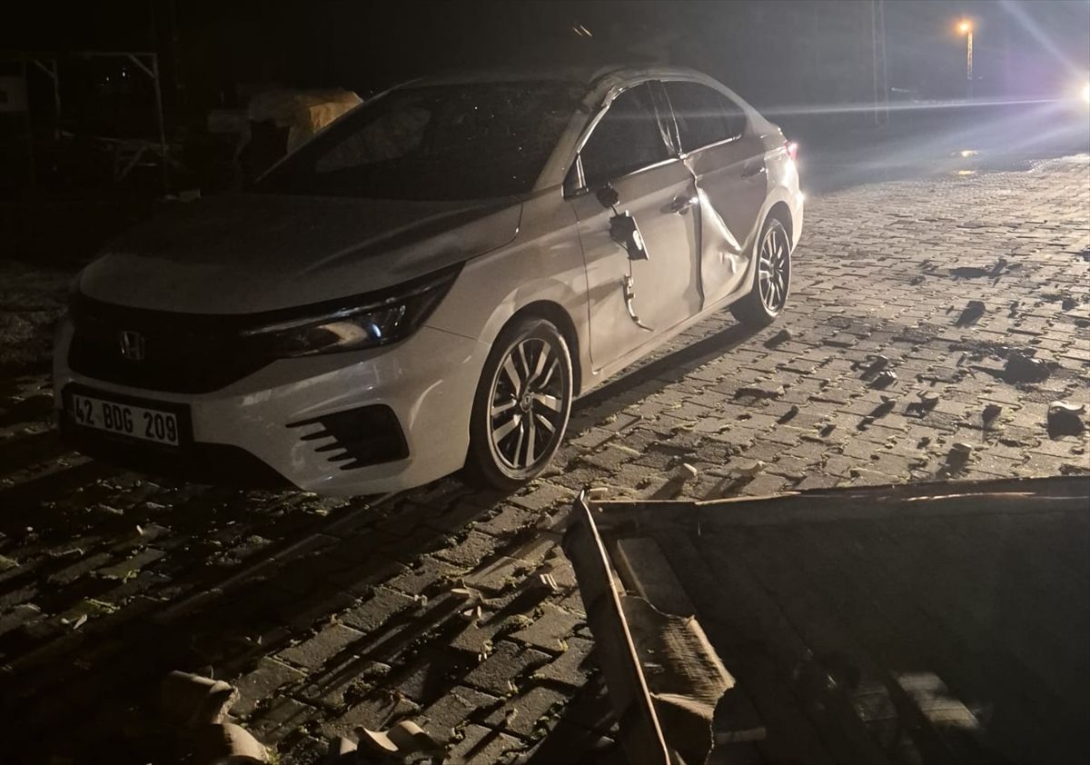 Konya'da şiddetli rüzgar araçlara ve binalara zarar verdi