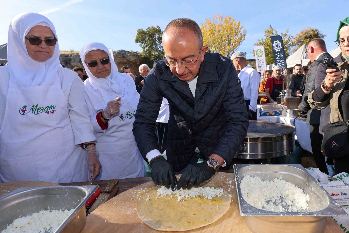 Bu kadim kültürün yüzyıllardır süregeldiğini hatırlatan AK Parti Meram İlçe Başkanı Mehmet Munlafalıoğlu da yaptığı konuşmada şu görüşlere yer verdi; “Etkinlikte o kadar güzel ürünlerle karşılaştım ki lezzet düşkünlerini cezbediyor. Burada bizleri buluşturan bu etkinlik bizlere tarihimizi, geçmişimizi ve esasında kültürümüzün buralardan geldiğini anımsatıyor. Meram Belediyesi ve Başkanı Mustafa Kavuş, kadim Meram kültürünü yaşatmak ve gelecek nesillere aktarmak adına önemli işlere imza atıyor. Sonbahar başında Meram Bağı’nda yapılan ‘Pekmez ve Bulgur Kaynatma Etkinliği’ gibi bu etkinlikle de kültürümüze sahip çıkmaya çalışıyor. Kendisine teşekkür ediyor, üreticilerimize de ürünlerinin bereketli olmasını temenni ediyorum.”