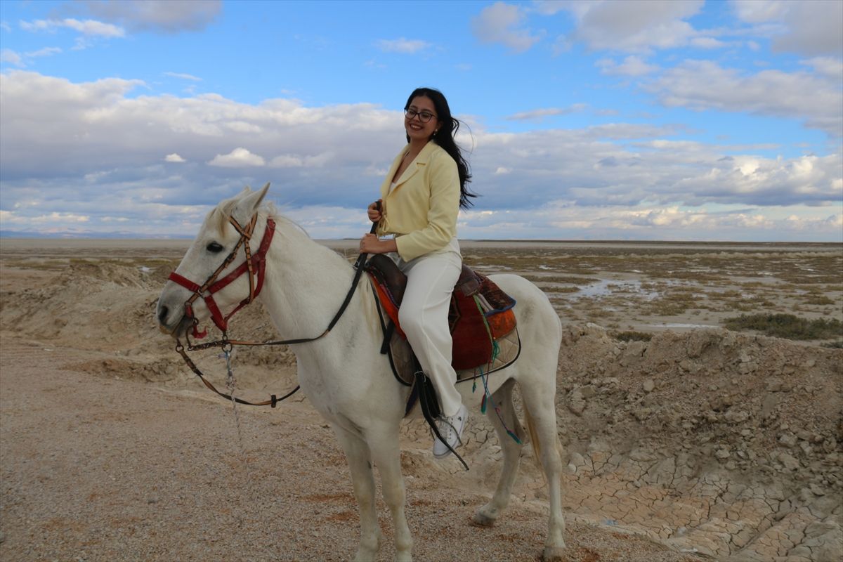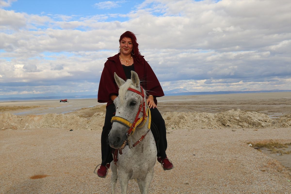Tuz Gölü'nü ilk kez ziyaret eden öğrencilerden Rabia Taşkaya, "Doğanın tam ortasında, at ve ATV turlarıyla keyifli bir gün geçirmek büyük mutluluk." diye konuştu.