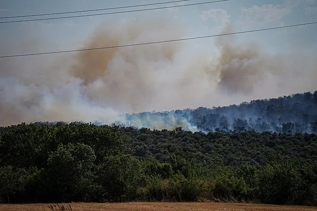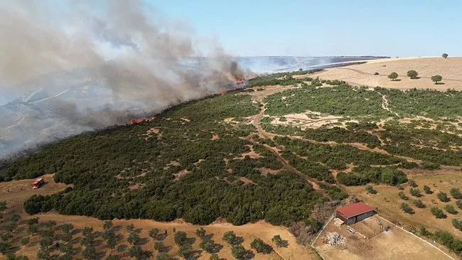 Tekirdağ'ın Şarköy ilçesinde çıkan anız yangını ormana sıçradı. İtfaiye ekipleri yangına havadan ve karadan müdahale ediyor.
