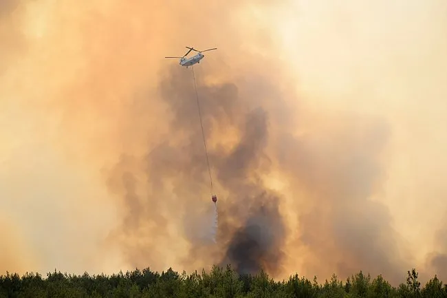 Seyitoba Mahallesi'nde çıkan orman yangınına ise 5 uçak, 13 helikopter, 32 arazöz, 2 itfaiye, 15 su tankeri, 7 iş makinesi ile müdahale başlatıldı.