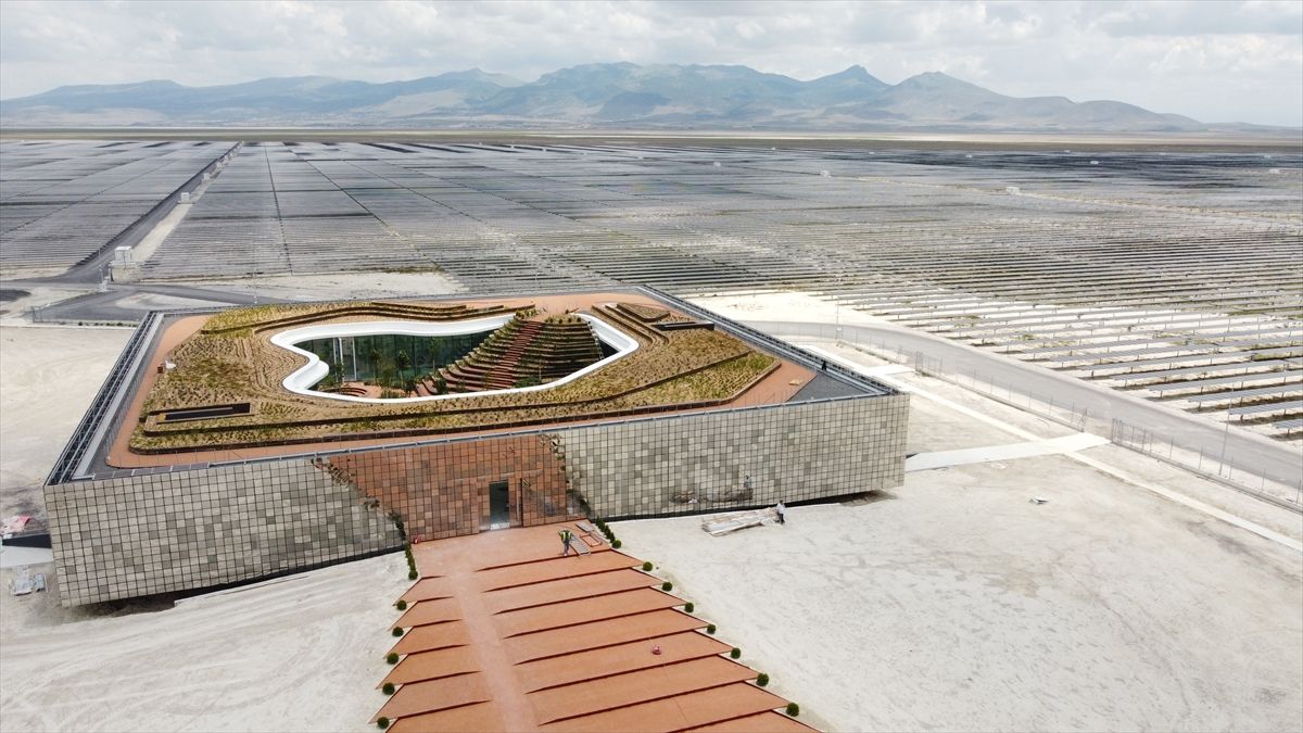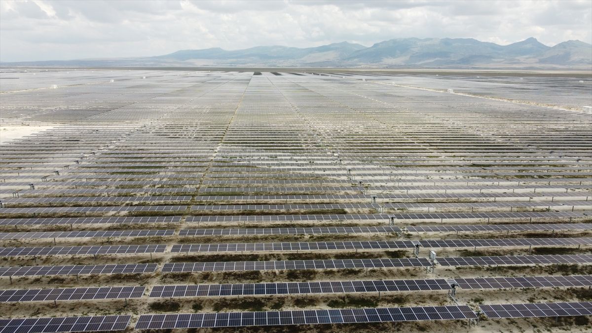 "3 milyon 256 bin panelimiz var. Bu panellerin hepsi Kalyon PV Fabrikasında yüzde 80'nin üzerinde yerlilikle üretildi. Burada taş bir nevi panele dönüştürüldü ve buraya getirildi. Yaklaşık iki buçuk senede de bu kurulum tamamlanarak hizmete girdi. Santralde 1350 megavatlık kurulu güç var. Yılda yaklaşık 2 milyon kişinin evsel elektrik ihtiyacını buradan karşılıyoruz. Temiz bir enerji. Yenilenebilir enerji kaynağı ve böylelikle de konvansiyonel sistemler yerine bu kaynağı kullandığımız için yıllık 1,5 milyon tondan fazla karbondioksit salınımının da önüne geçiyoruz. Böylelikle doğaya da katkı sunuyoruz. Vasıfsız arazide büyük bir yatırımla elektrik üretme noktasına getirdik ve ülkemize fayda sağlıyoruz."