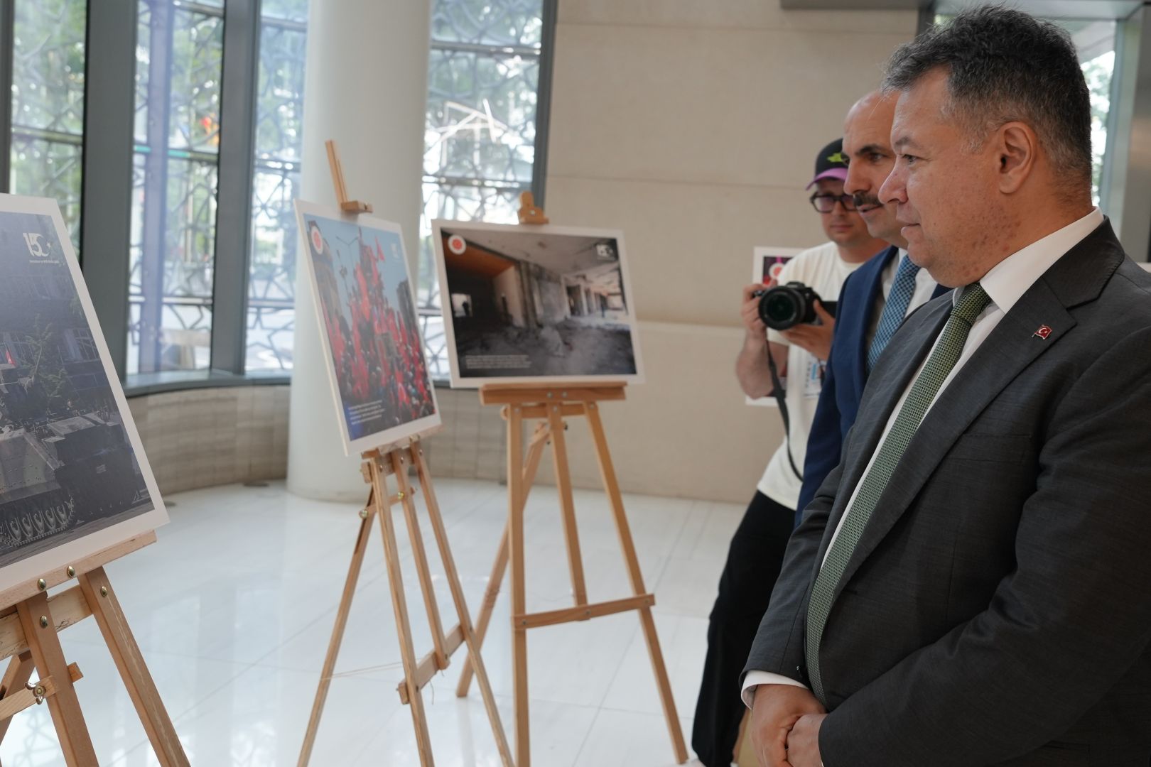 Darbe girişimini anlatan video gösteriminin ardından, Türkevi’nin giriş katında açılan 15 Temmuz sergisi de davetliler tarafından gezildi.