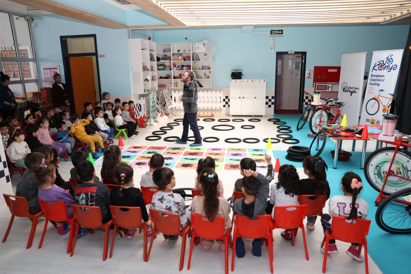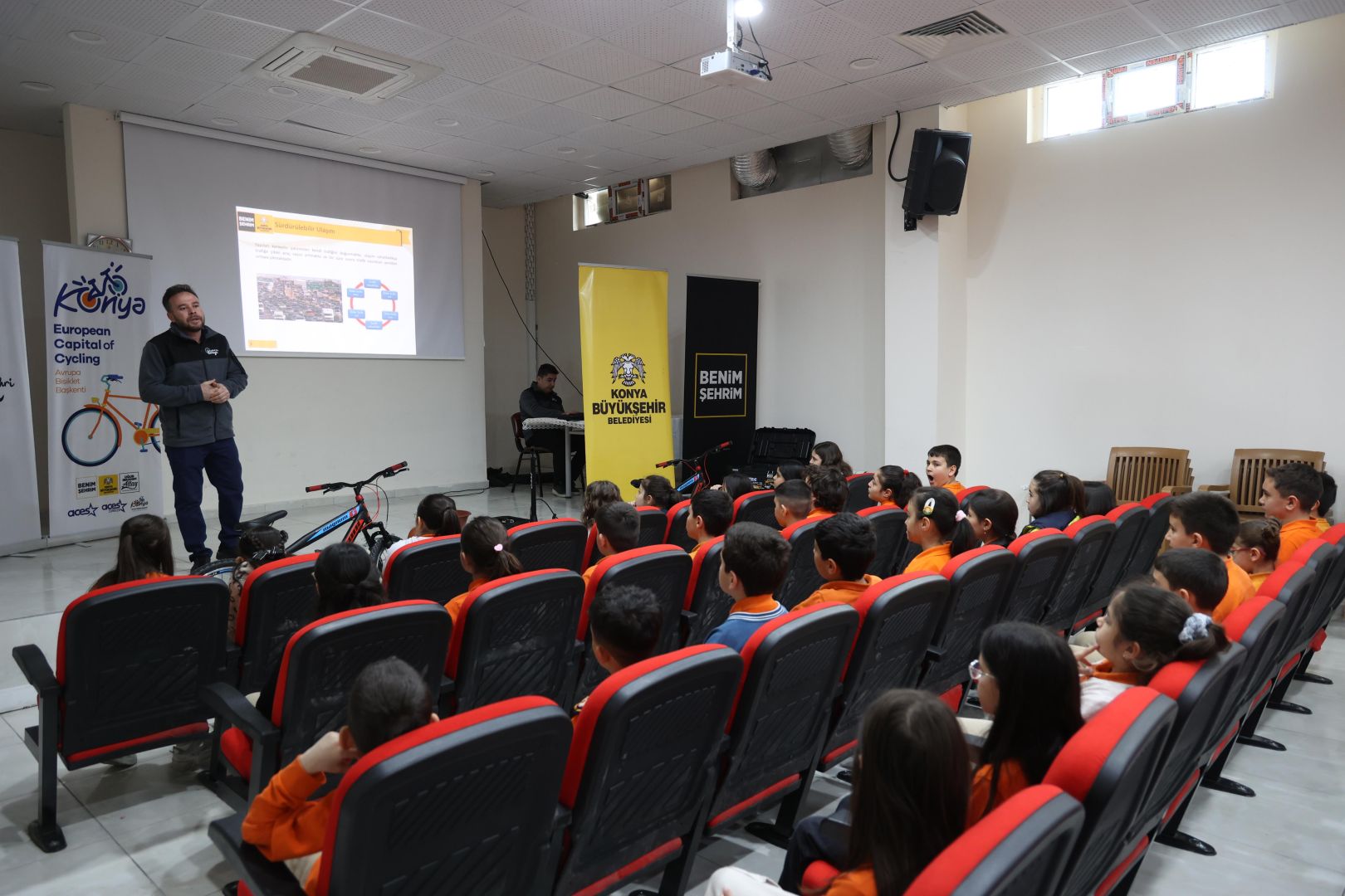 Konya Büyükşehir Belediyesi, anaokulu ve ilkokullarda öğrencilerin bisiklet konusunda daha fazla bilinçlenmesi ve farkındalık kazanması amacıyla çeşitli etkinlikler yürütüyor.