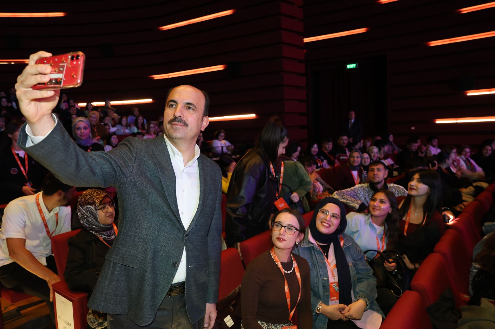 Selçuklu Kongre Merkezi’nde gerçekleştirilen zirvede konuşan Başkan Altay, Konya’nın insan merkezli bir şehir olduğunu belirterek, “Bugün gelinen noktada 5 üniversitede 130 bin üniversite öğrencisi ile Türkiye'nin en dinamik şehirlerinden birisi Konya ve bu 130 bin öğrencimizin neredeyse yarıdan fazlası Konya'ya diğer şehirlerden gelen gençler. Dolayısıyla biz üniversitelerimizin şehre ne kattığının farkındayız. Biz de Konya Büyükşehir Belediyesi olarak üniversite eğitiminizin başlangıcından sonuna kadar yanınızda olmak için çeşitli faaliyetler yürütüyoruz ve bu faaliyetlerimizin merkezinde de Gençlik Meclisimiz var, Kademe var. Aslında bütün amaç sizin kişisel gelişiminize katkı sunabilmek” dedi.