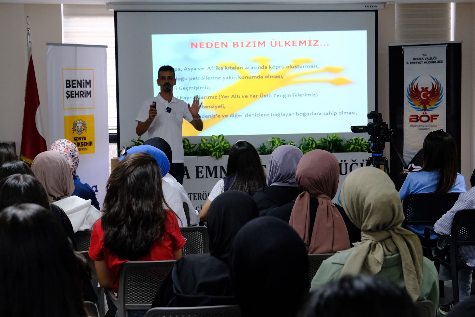 Konya Büyükşehir Belediyesi bünyesinde hizmet veren Lise Medeniyet Akademileri’nde (LİMA) öğrenciler, İl Emniyet Müdürlüğü ekipleri tarafından terör örgütlerine karşı bilinçlendiriliyor.