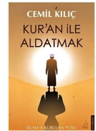 CEMİL Kılıç’tan KUR’AN İLE ALDATMAK. Kur’an ile aldatmak nasıl başladı? Kur’an ile aldatanların niteliği: Şeytanın evliyası olmak! Kur’an ile aldatmada şeriat hilesi… Kur’an ile aldatma kurumu olarak Diyanet İşleri Başkanlığı… Kur’an ile aldatma kurumları olarak Kur’an kursları…İslam’a pusu kuranlar kimler? Müslüman ile İslamcı arasındaki farklar… Dindar ile dinci arasındaki farklar… Şeriat ile İslam arasındaki farklar… Cihada karşı cihat! İlahiyatçı yazar, Kur’an ile aldatanların maskelerini indiriyor!