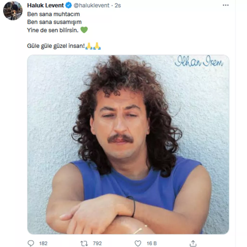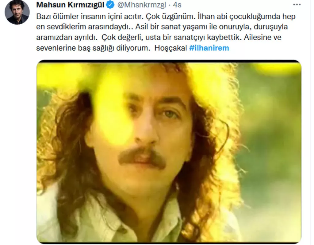 "Az olan insanlardan İlhan İrem abimizin mekanı cennet olsun. Tüm sevenlerine başsağlığı dilerim."