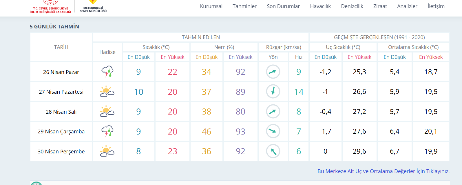 30 Nisan Perşembe günü yağışlar gökgürültüsünü kaybederek sağanak şeklinde devam edecek. Hava sıcaklığı 7 ila 20 derece arasında değişirken, yüksek nem oranı hissedilen serinliği artıracak.