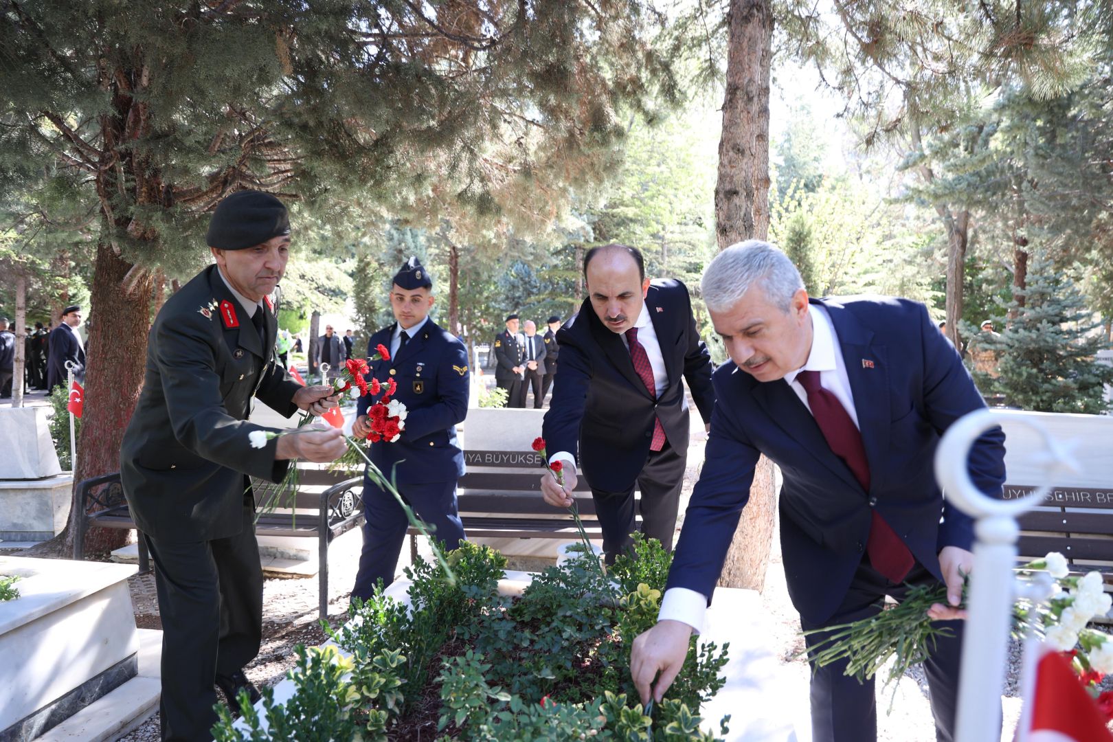 Daha sonra Konya Askeri Şehitliği’ni ziyaret eden protokol, şehitlerin mezarlarına karanfil bırakarak dualar etti. Ardından Türkiye Muharip Gaziler Derneği Konya Şubesi ile Türkiye Harp Malulü Gaziler Şehit Dul ve Yetimleri Derneği Konya Şubesi ziyaret edilerek burada gaziler ve şehit yakınlarıyla bir araya gelindi.