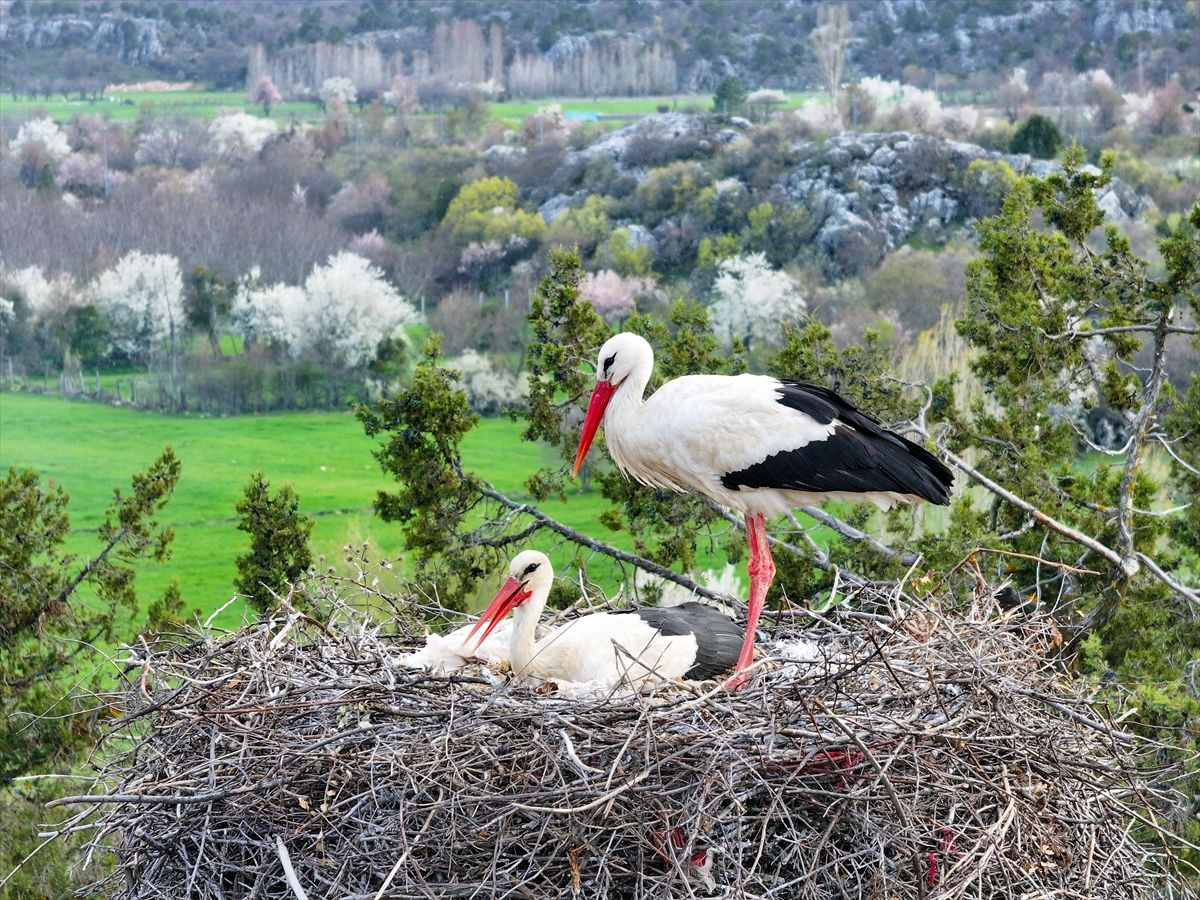Konya'da Leylekler Vadisi'nin konukları kuluçka döneminde birbirlerine destek oluyor