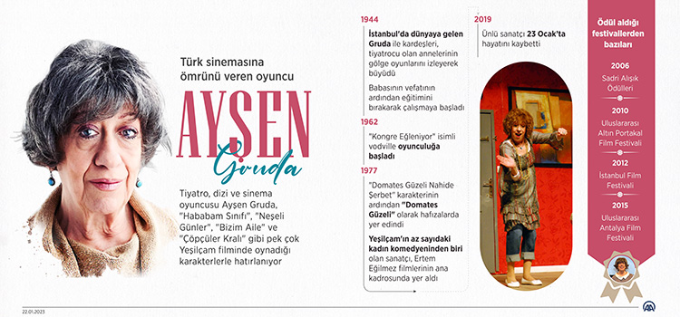 Gruda, annesinin rol aldığı Yeşilçam filmlerindeki başarısının en önemli nedeninin samimiyet olduğunu vurgulayarak "Türkiye'de her kesimden ailenin bir ferdi gibiydi onlar. Annem sinemaya geçtiğinde çok tecrübeli bir tiyatro oyuncusuydu. Özellikle komedinin inceliklerini iyi biliyordu." dedi.