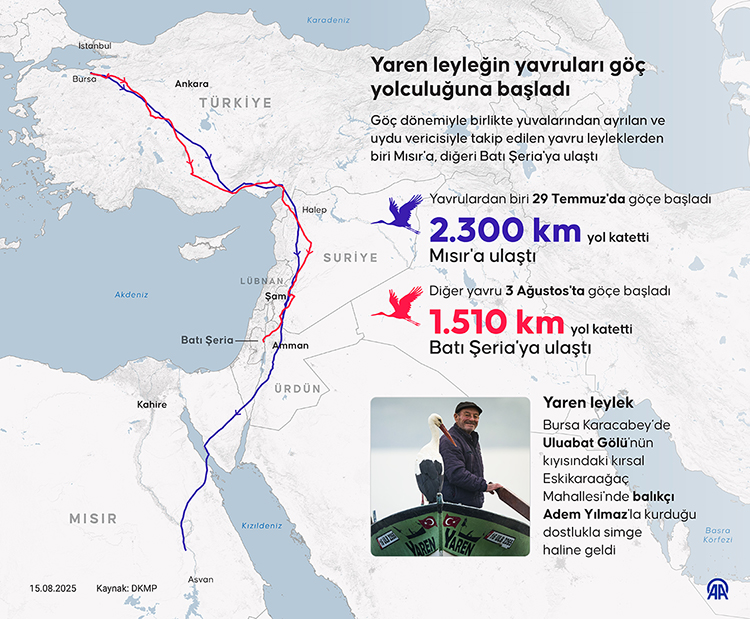 Bu yıl başlatılan Türkiye Kuş Göç Yollarının Belirlenme Projesi kapsamında izlenen yavrulardan biri 29 Temmuz'da, diğeri de 3 Ağustos'ta göçe başladı.